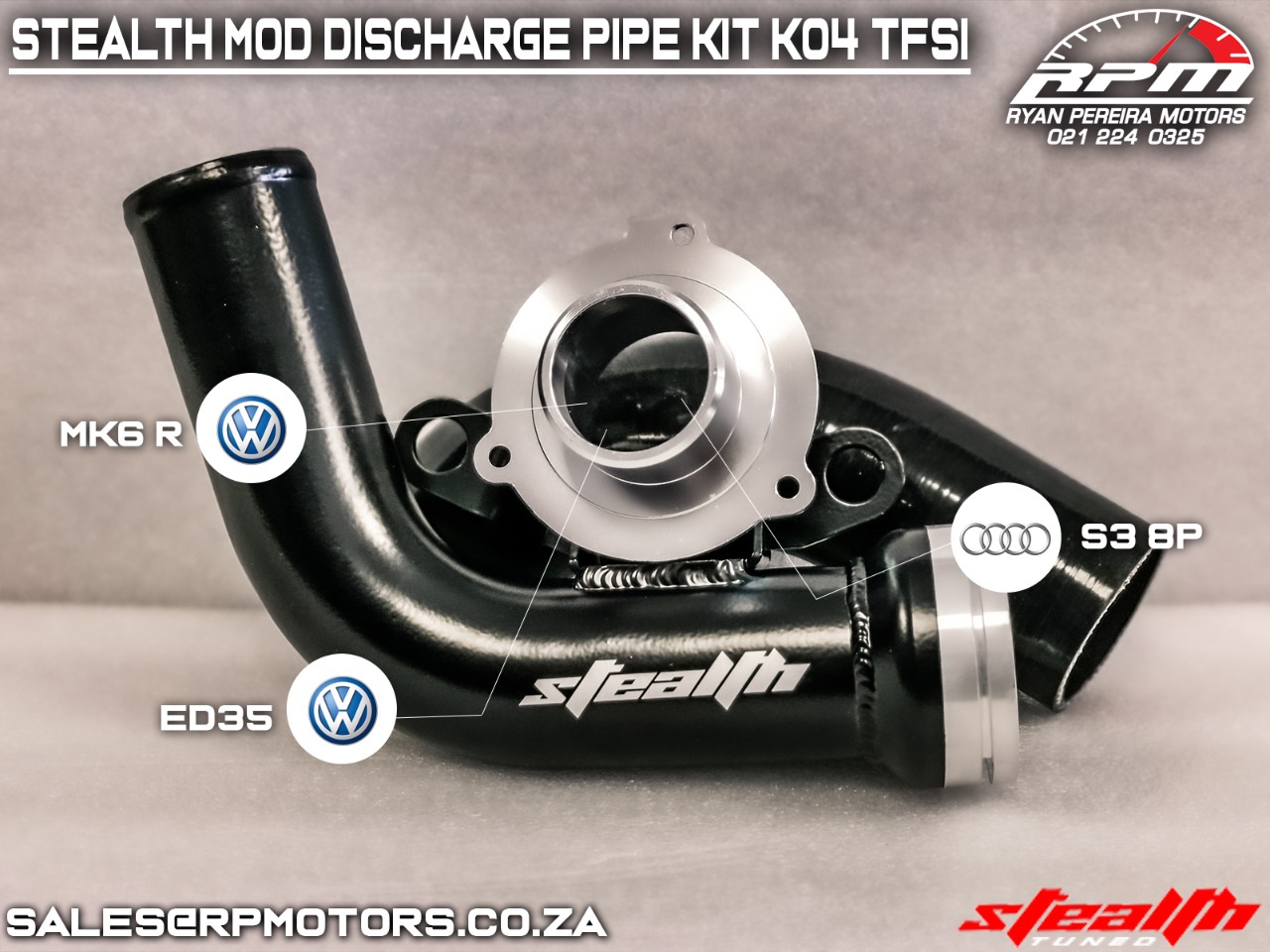 Attention to detail is Stealth’s forte, so take notice of the machined lip on the mounting flange that ensures leak free performance. Secondly, a new silicone hose is included to mate our new discharge adapter to the next and most important item in the kit, our modified OE discharge pipe.